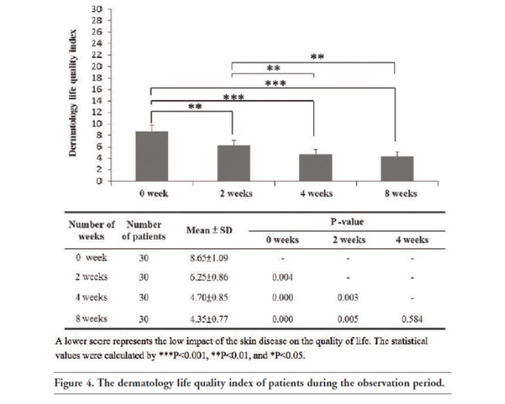 지속적으로 감소하였으며, 특히 치료 한 달 후부터는 큰 개선이